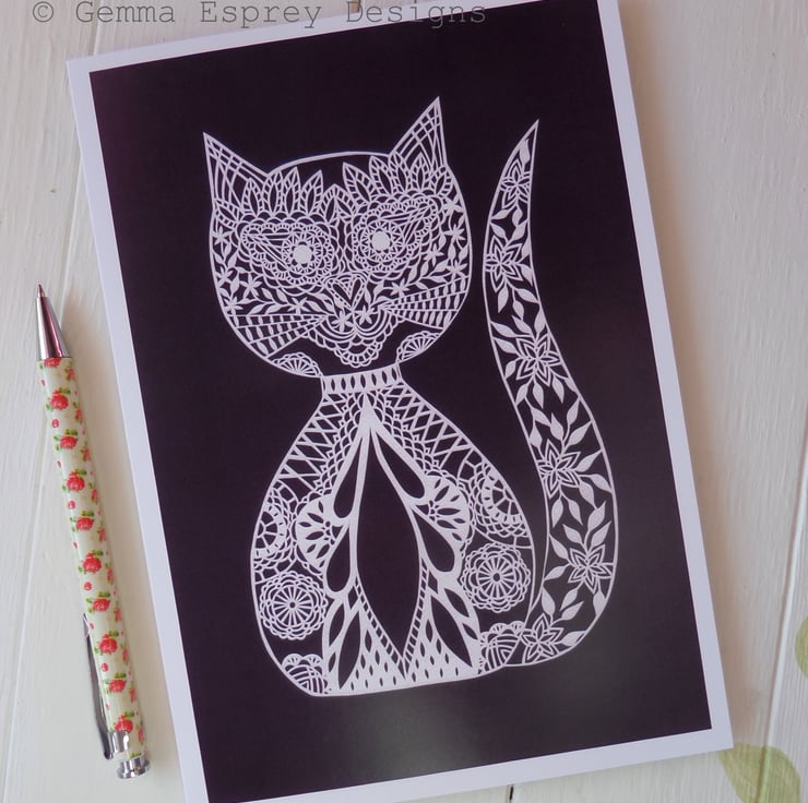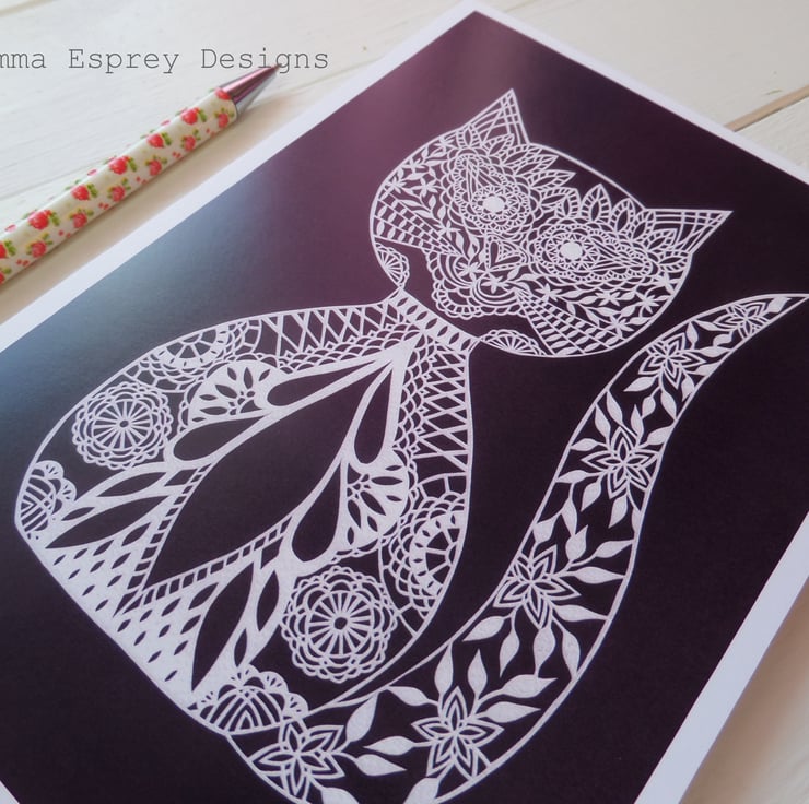 The printed design is taken from the original hand-cut papercut 'Lacy Cat' by Gemma Esprey.