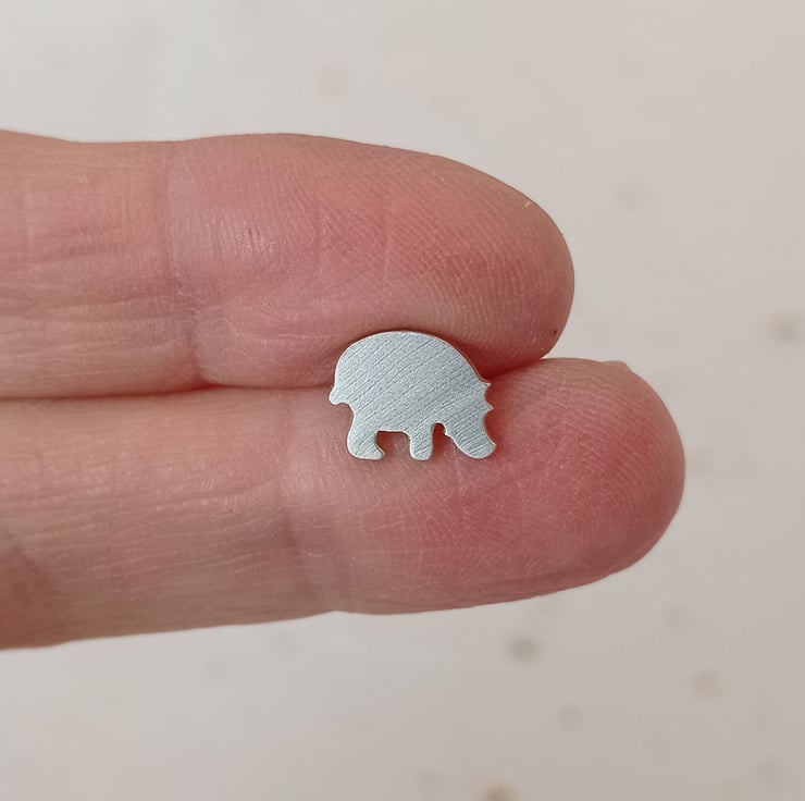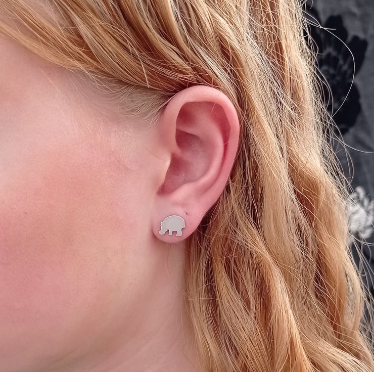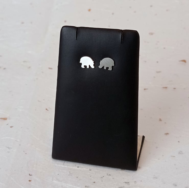 I have made these hippo stud earrings by cutting recycled sterling silver by hand and soldering sterling silver ear posts to the back. They are part of a collection of animal jewellery, which includes a matching hippo necklace.