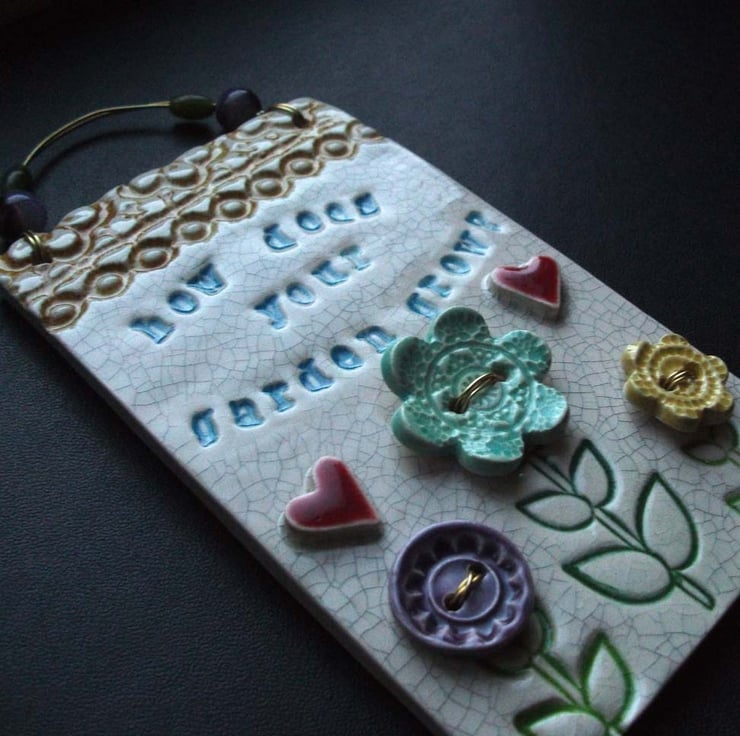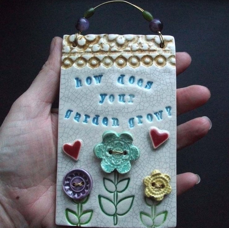 This little wall plaque is made from white earthenware clay and measures 5" x 3" or 15 x 8 x 1.5cm