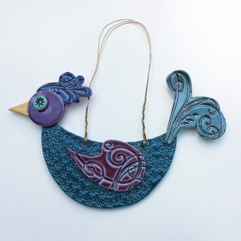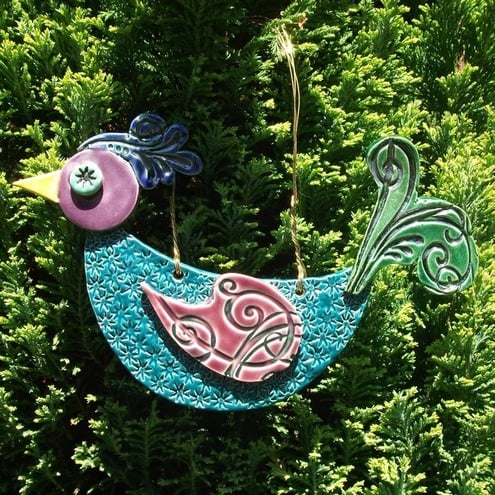 This cute little bird is designed to hang on the wall or from a plant or anywhere you like really!