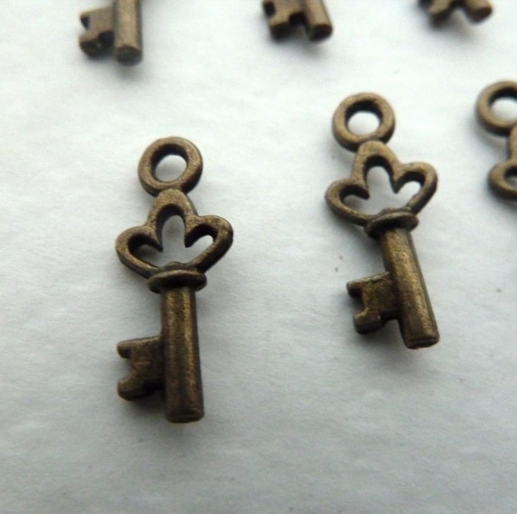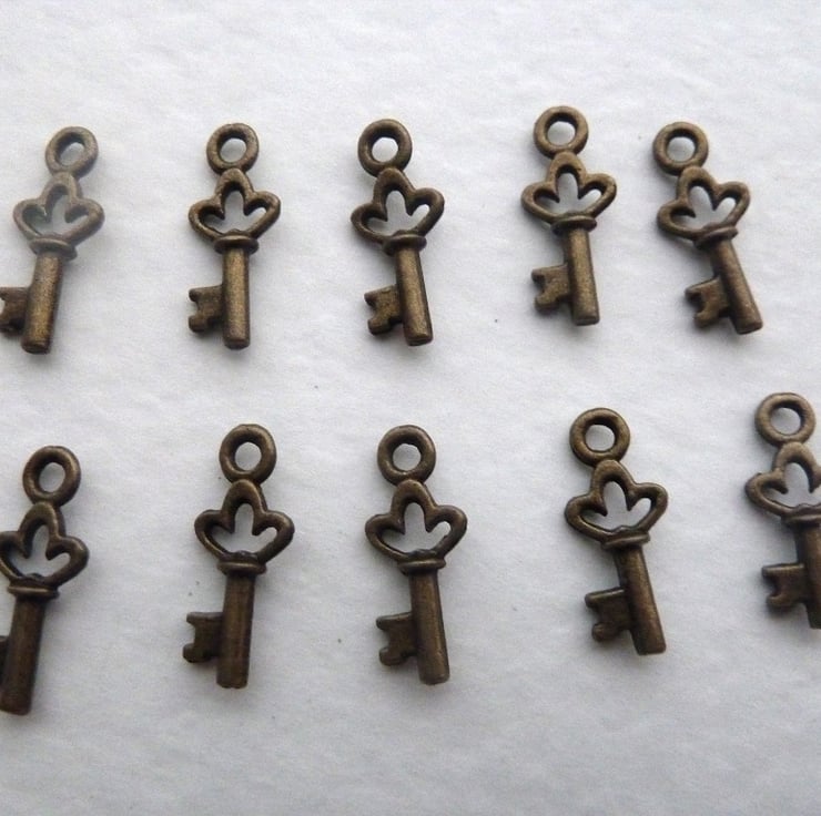 A pack of 10 bronze key charms.