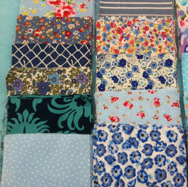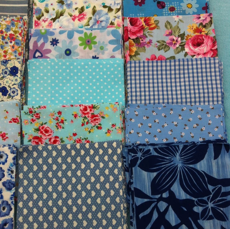 A gorgeous selection of 40 x 5" cotton squares in a lovely selection of blue cotton fabrics , ideal for patchwork ,card making and sewing projects