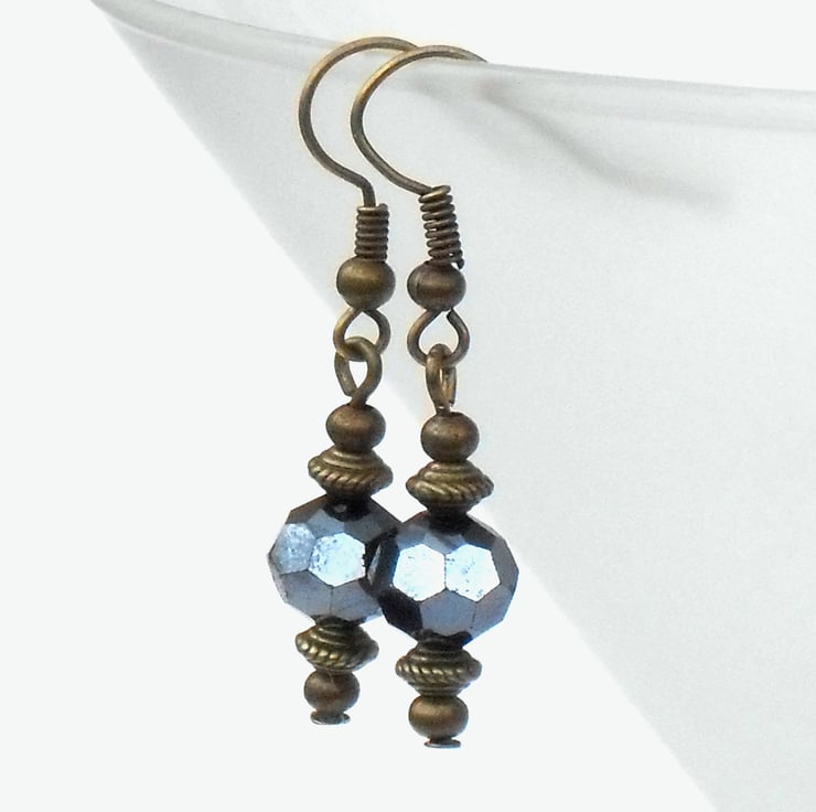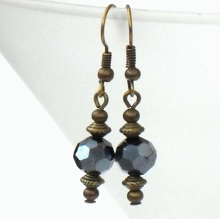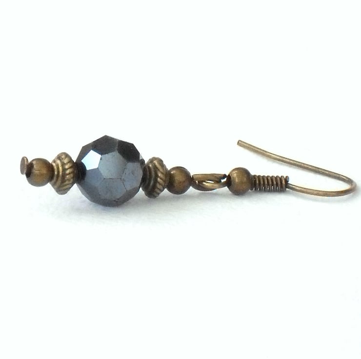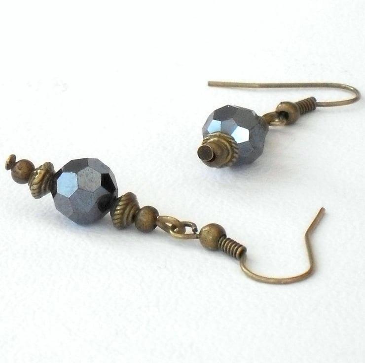 I have used faceted 8 mm jet crystals and hung them on bronze wires with delicate bronze rondelle shaped beads.