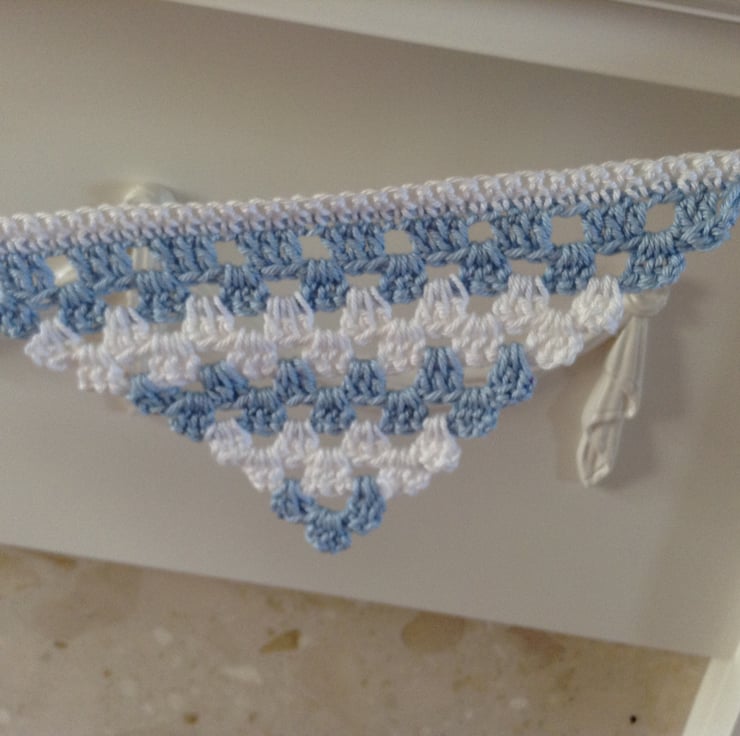The seven triangles have been lovingly crocheted in a 100% cotton yarn which is machine washable.