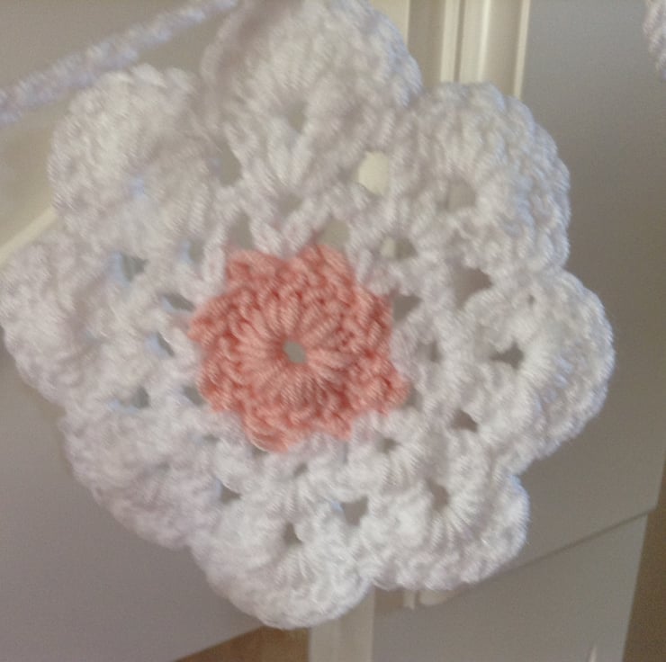 The garland has been lovingly crocheted in a 100% acrylic yarn which is machine washable.