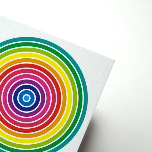 Three 'Ringo!' notecards. Retro concentric circle illustrations in lots of vibrant shades.