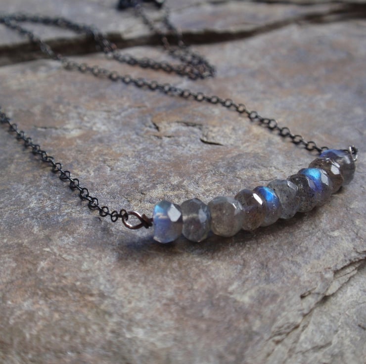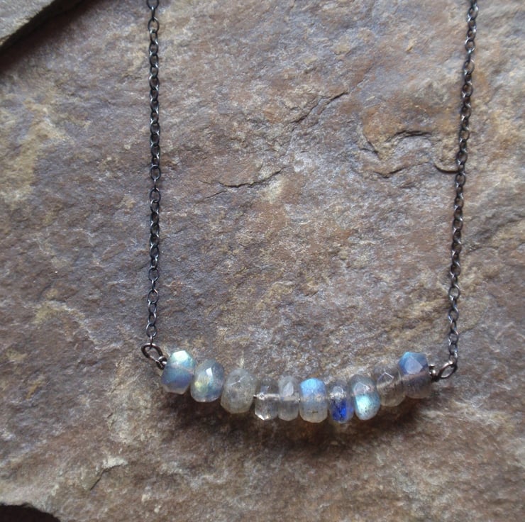 Pretty and understated labradorite necklace with an oxidised (blackened) sterling silver chain.