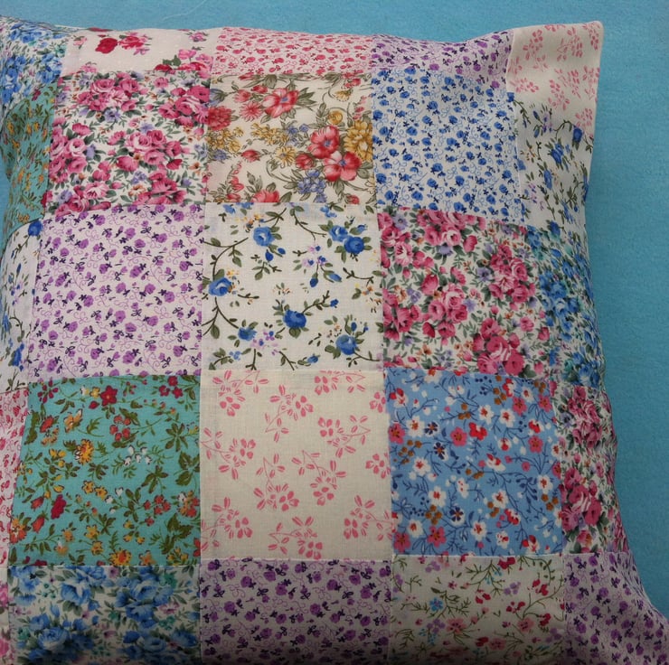 Gorgeous cushion , pillow cover 16" x 16" in really pretty floral fabrics with white cotton fabric envelope opening