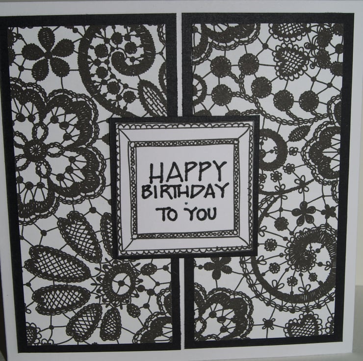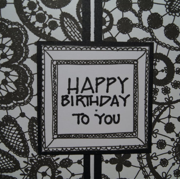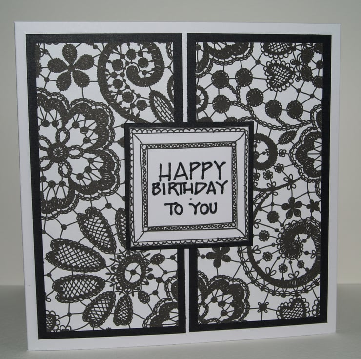 A classic, striking Birthday card, with hand stamped Happy Birthday on the front.