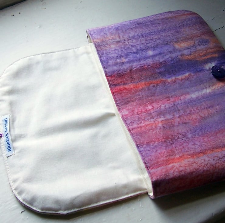 Fabric clutch bag with patchwork and embroidered flap. Perfect for a bridesmaid gift, this bag is one of three made with the same fabrics. Due to the nature of the flap design, each one is unique.