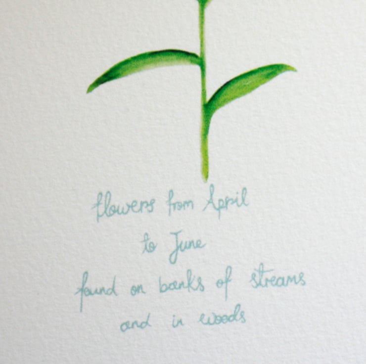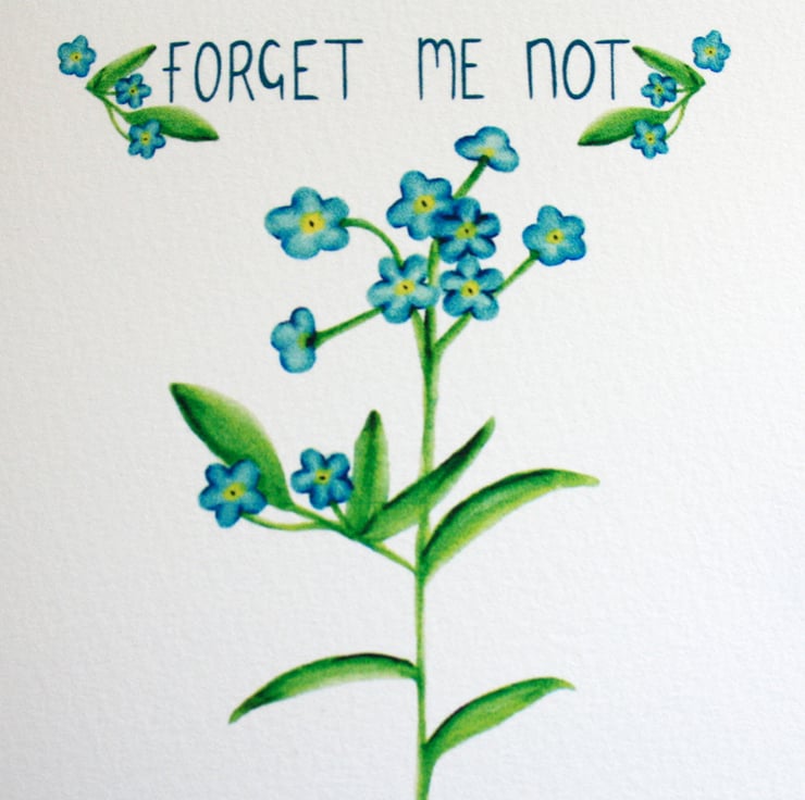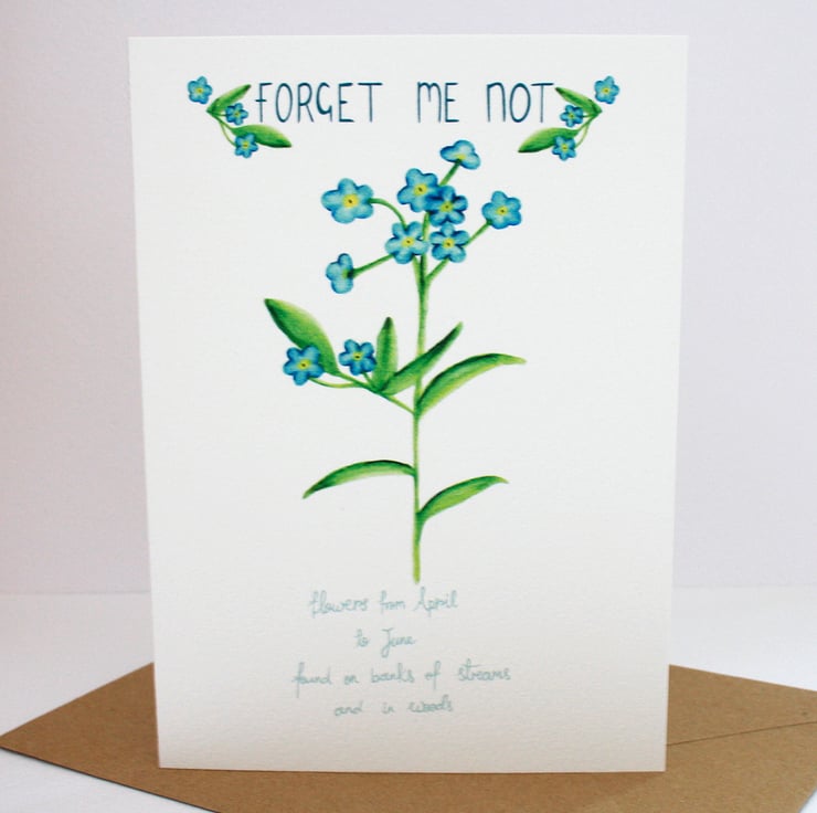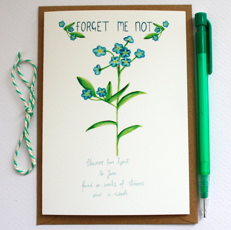 Simple and pretty card featuring my watercolour illustration of a forget me not and hand lettering from my British wild flowers range.
