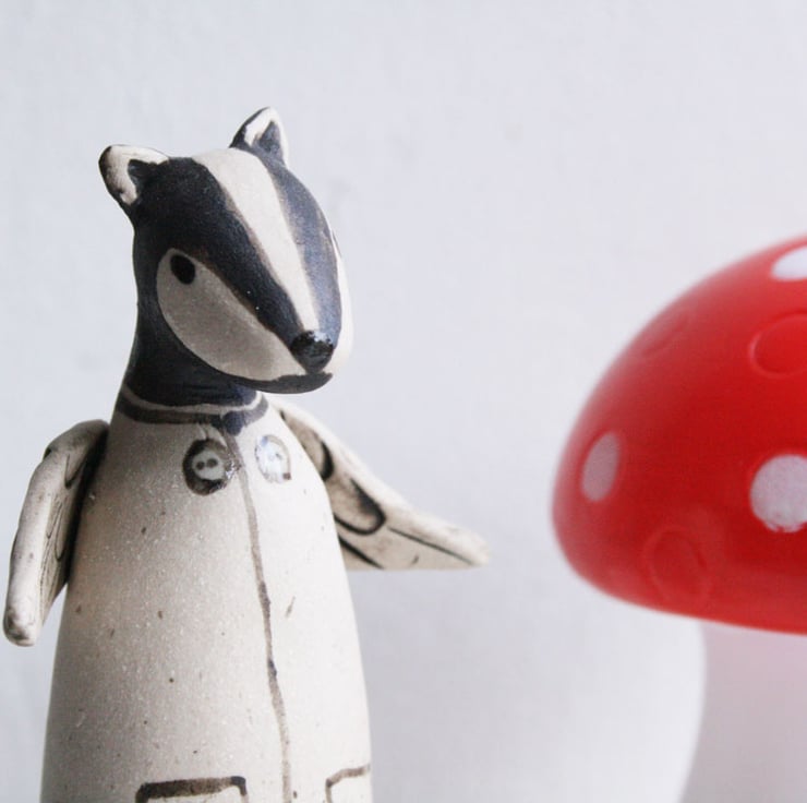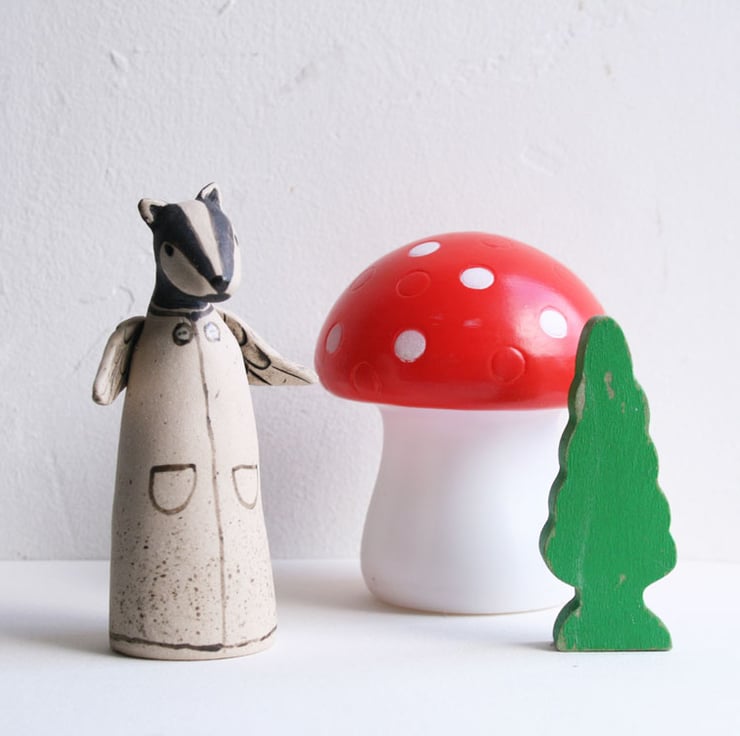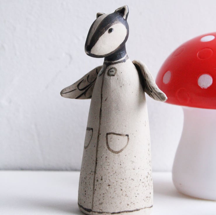 Hand crafted from stoneware clay and fired to 1230 degrees centigrade. They have little glossy glazed eyes and buttons, and little handpainted tails on the reverse.