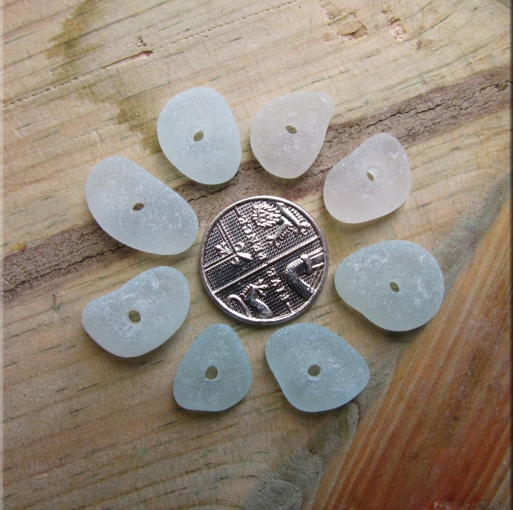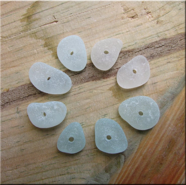 8 Natural sea glass beads, middle drilled, chunkies, supplies (13)
