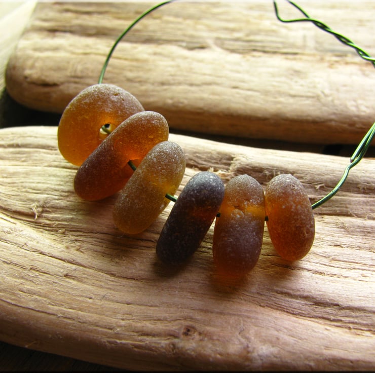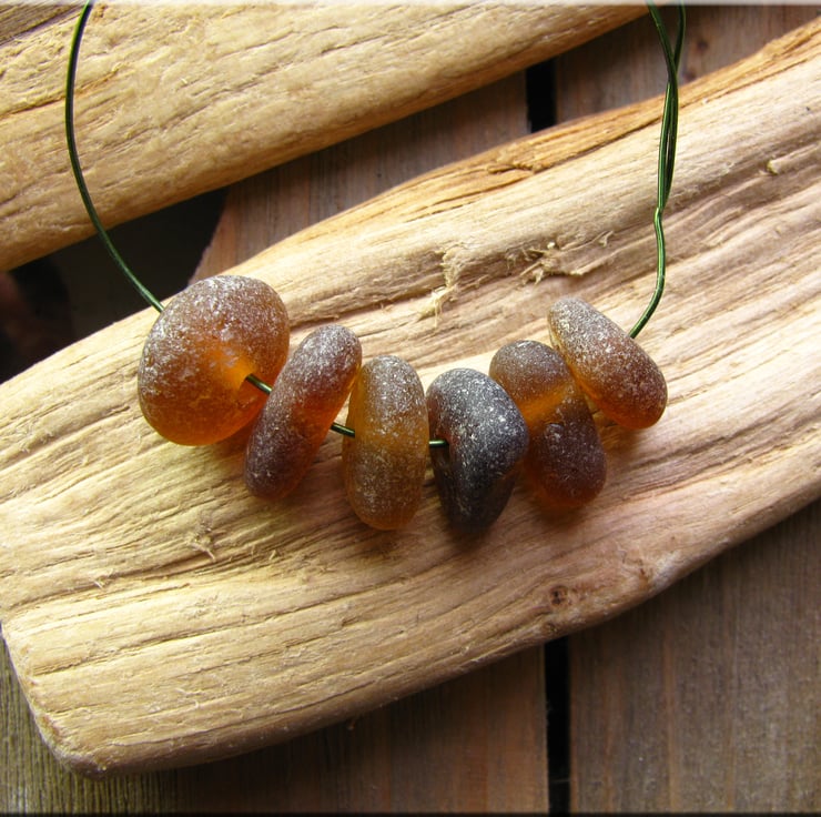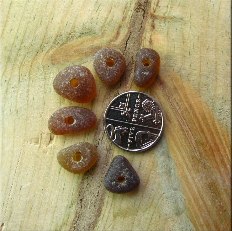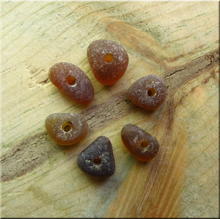 6 Natural sea glass beads, middle drilled, chunkies,supplies (18)