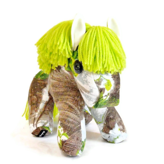 A unique pony made from genuine 1950's bark cloth fabric and hand finished with button eyes, and a thick wool mane and tail. - usual price £30