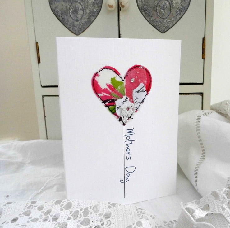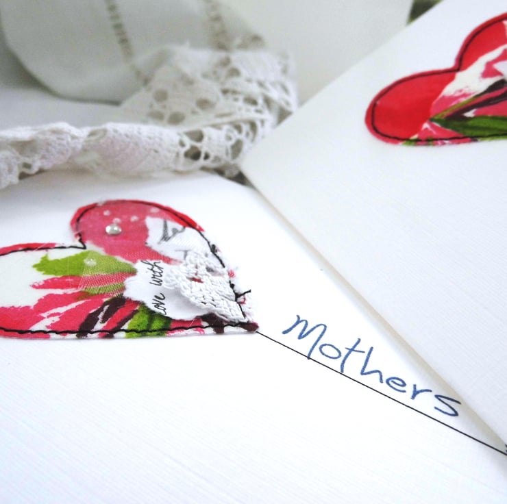 free machined onto white card and embellished with lace and sparkles, this card is A6 in size and comes with a white envelope and sprinkles of love