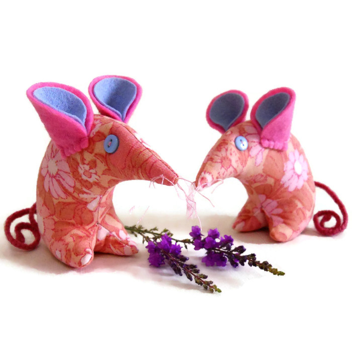 Retro 'tastic Mouse mouse has button eyes, felt ears and a plaited wool tail and cotton whiskers. She is approx 10cm tall from the tips of his toes to the top of her ears and approx 11cm from his nose to her bottom.