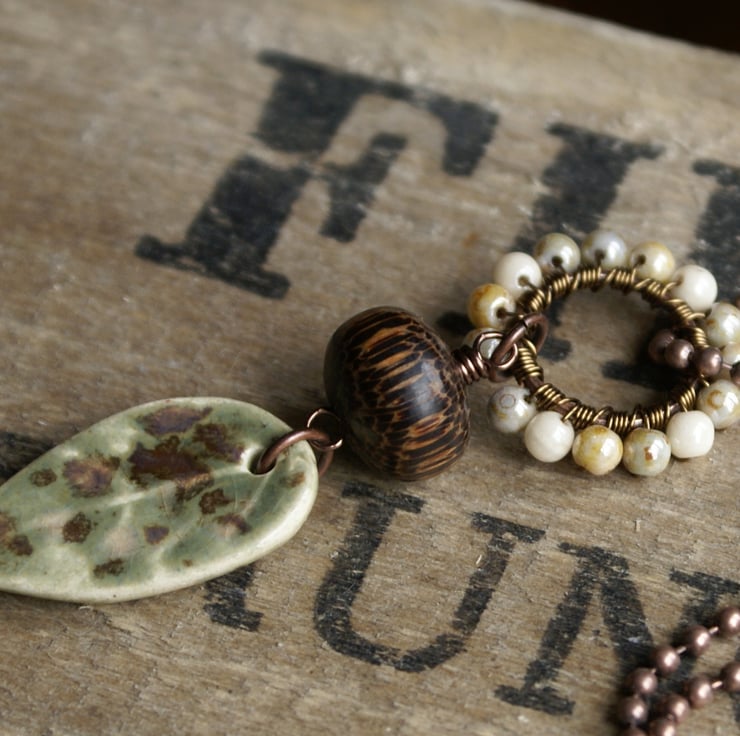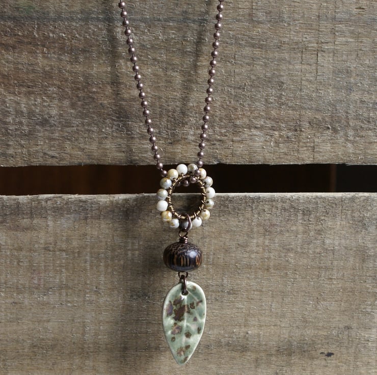Soft Spring - Wire Wrapped Pendant with Artisan Ceramic Leaf