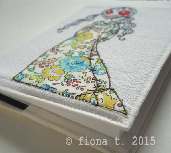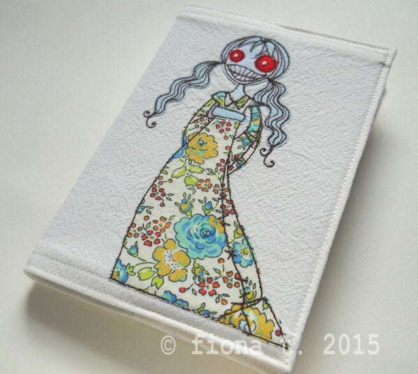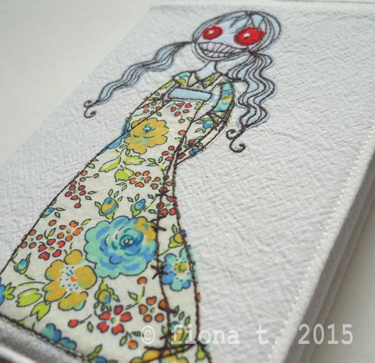 freehand embroidered zombie fabric notebook cover and A6 sketchbook.
