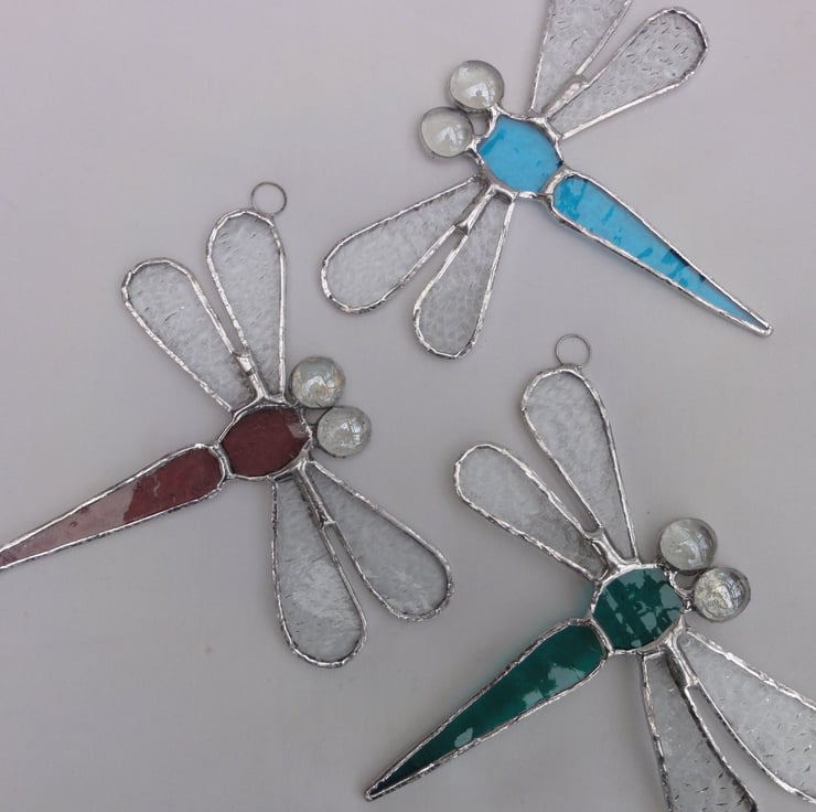 Here is a pretty little dragonfly made from stained glass. Did you know that the collective noun for a group of dragonflies is a Cluster? I didn't.