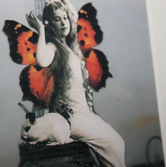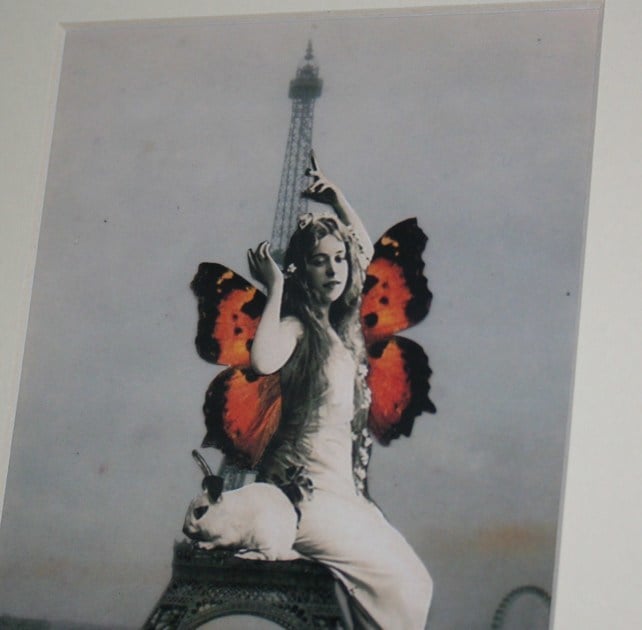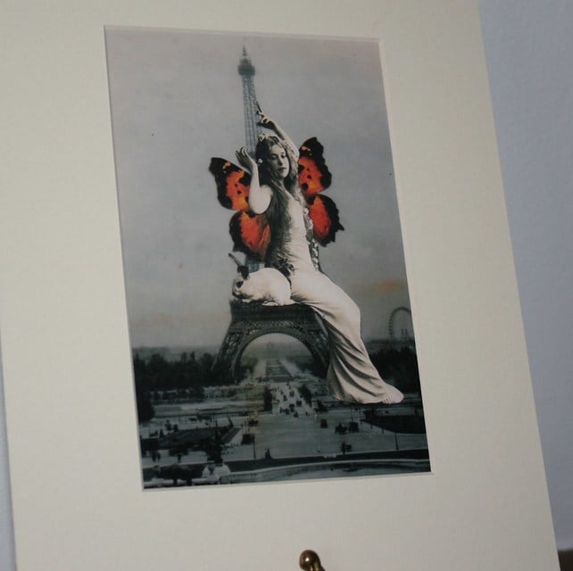 I bought an old photo of the Parisian Tower from a local antiques market. I also love old photos of vinatge women so I combined the 2 using photo editing to make this surreal image of a giant fairy reclining across the Eiffel Tower.