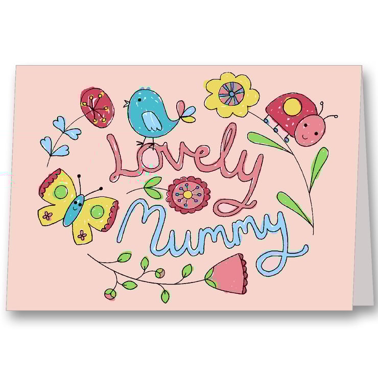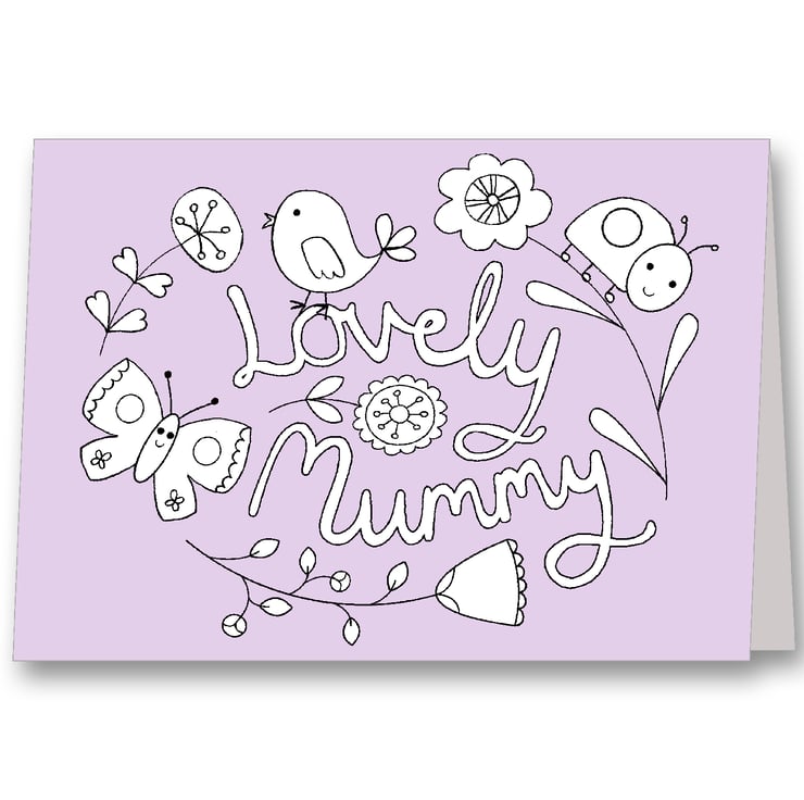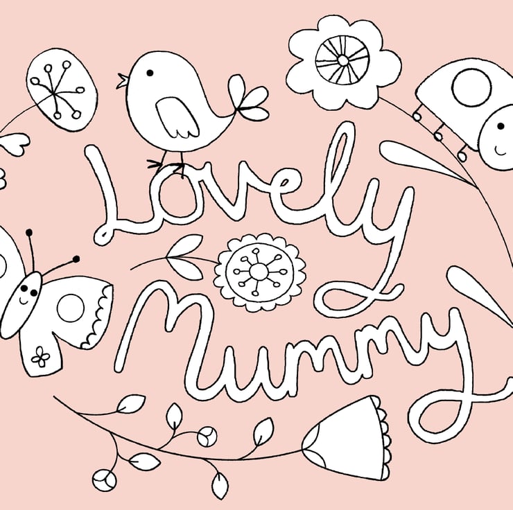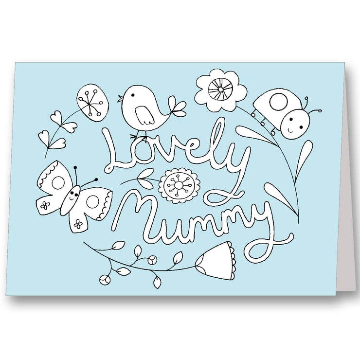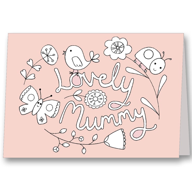 This card is extra special because it is designed to be coloured in by children! Kids love to colour and this gives them the opportunity to make a card especially for their lovely Mummy on Mothers Day. I have coloured in the background in a choice of pale pink, lilac or pale turquoise. Just let me know your preference when you order. If no preference in stated then I will send pale pink.