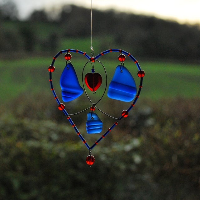 Our sun catchers are made in Chudleigh, Devon, using materials we collect ourselves from local beaches. Each piece of glass is unique, so each sun catcher is unique. Because our raw materials have spent time on the seashore our products may have small imperfections, which we think is part of the charm of beach glass decorations. We only use materials which have rounded edges, which is why we tumble pieces which have rough edges (this continues the process begun by the waves) until they are smooth.