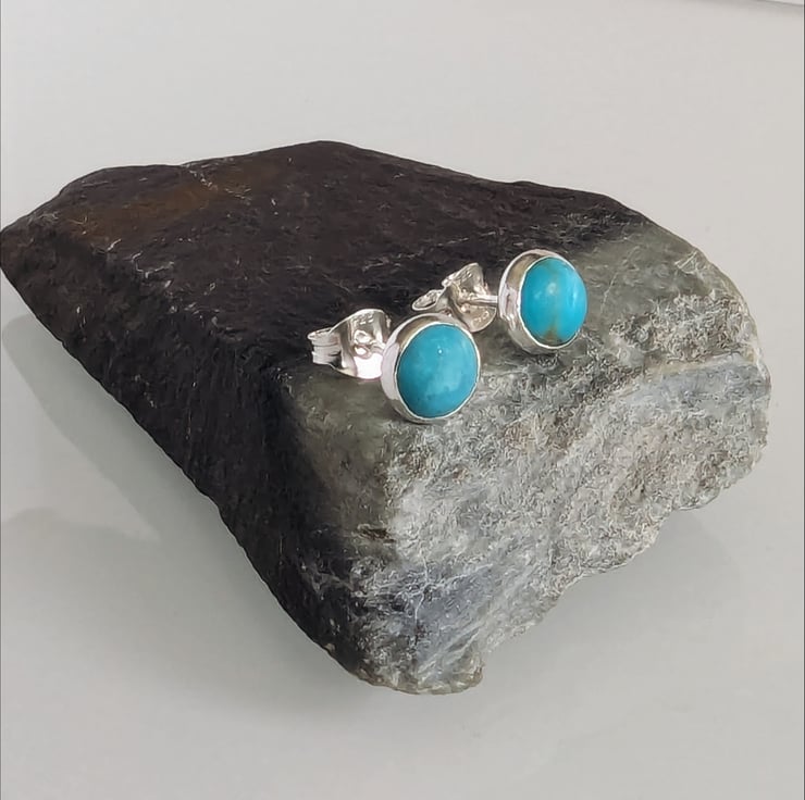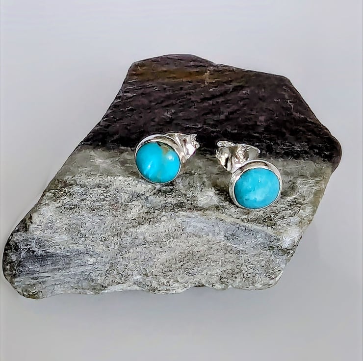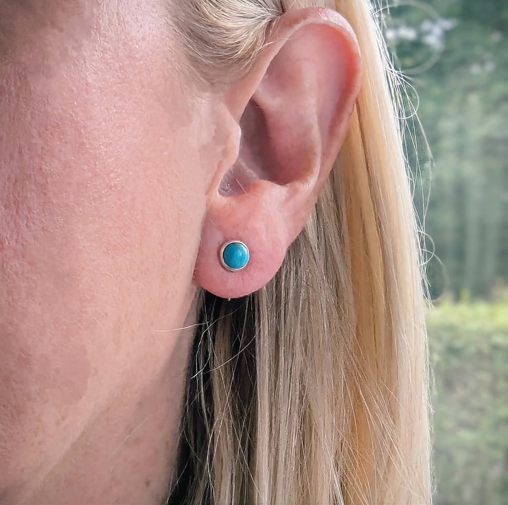 Natural Turquoise 5 mm cabochon set into sterling silver