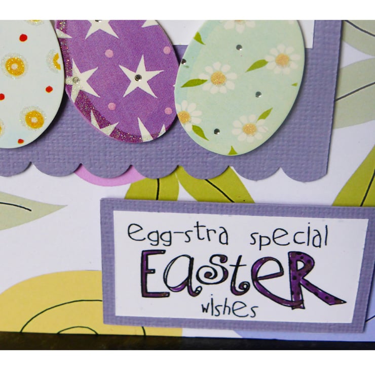 The sentiment on the front is Egg-stra Special Easter Wishes