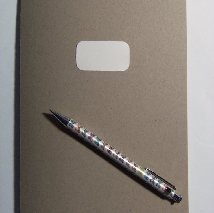 (the third photo shows example labels on smaller A6 size notebooks - they would be to scale with the label in photo 5).