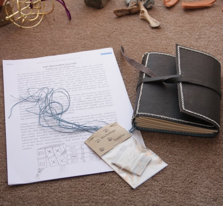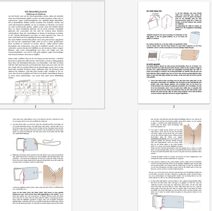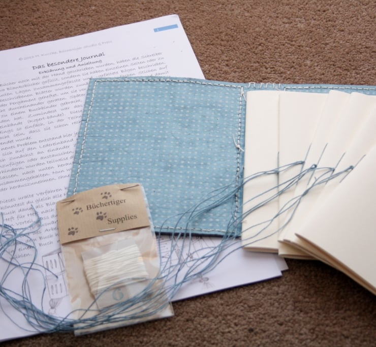 The instructions are per default in English but are available in German upon request. It begins with a very brief historic overview, putting the binding style in its place in time. Then follow a detailed instructions explaining step by step how to complete the journal.