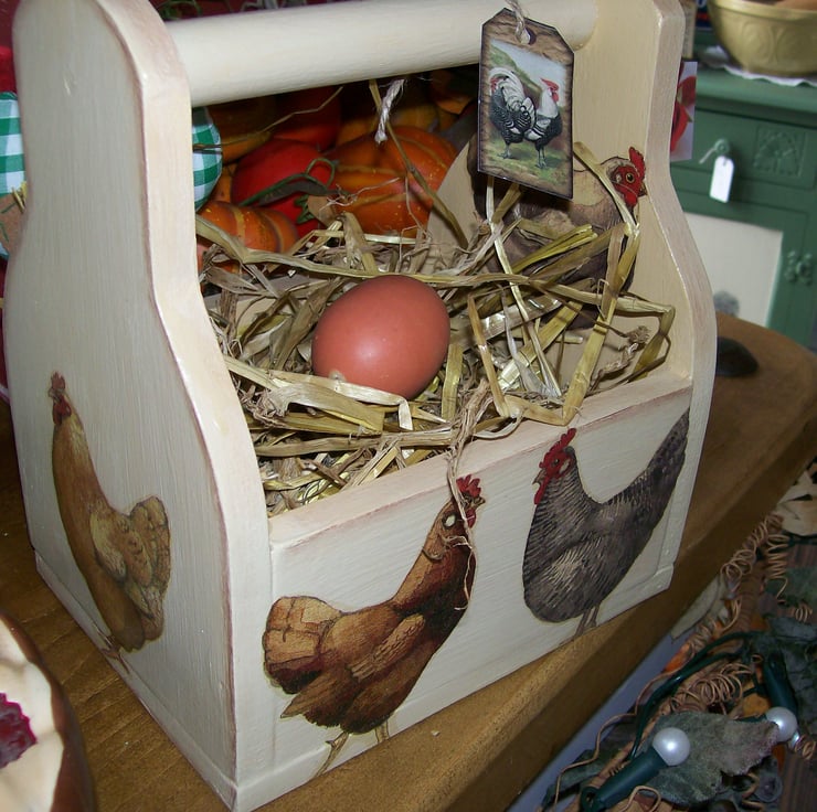 Decorated in Emma Bridgewater contrasting Chicken Designs... Measurement, 68 inches across but can be adjusted...