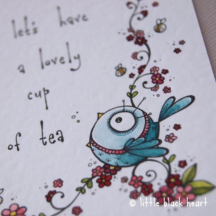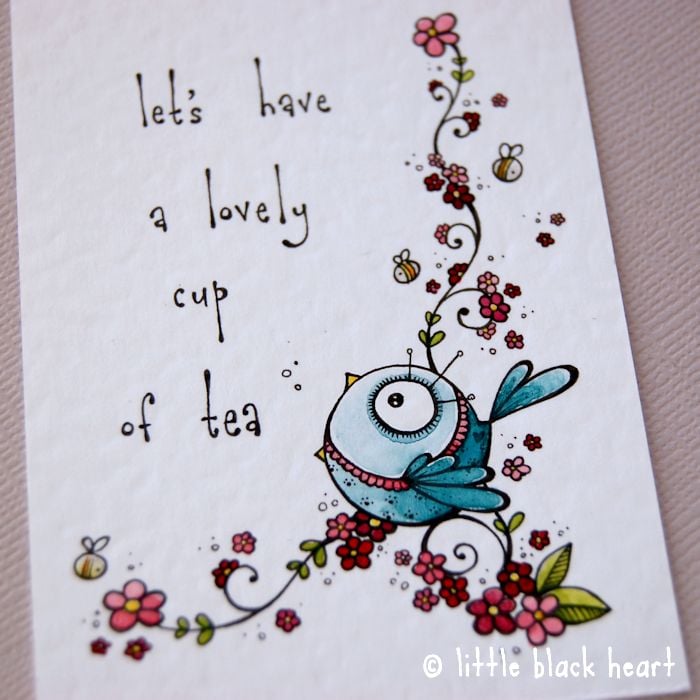 this little bluebird says it's time for a cup of tea.