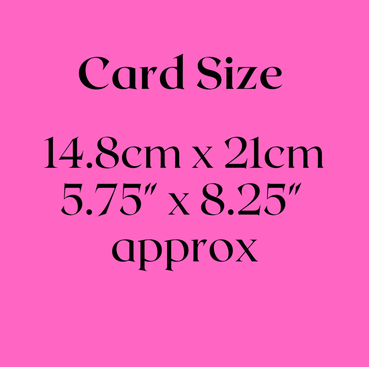 The card will be supplied with a quality envelope, in a protective cellophane sleeve. All cards are packaged carefully to ensure they arrive with you in pristine condition. The card measures 6ins x 8ins.