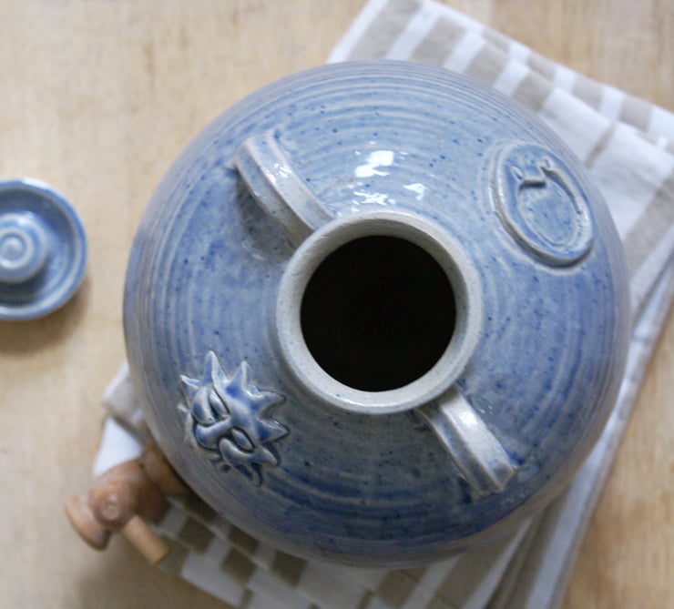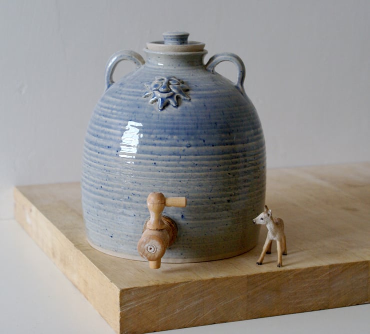 Handmade stoneware water cooler in speckled blue. Handmade Stoneware Pottery by littlewrenpottery on Folksy.