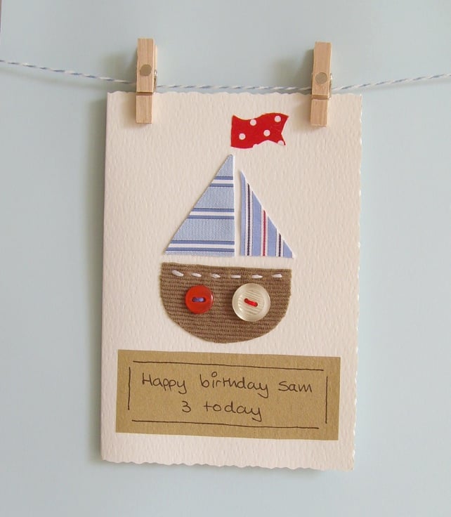 The boat is hand cut from recycled fabrics, hand sewn and finished off with vintage buttons.