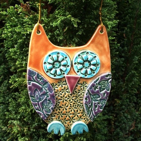 This cute ceramic owl is made from white earthenware clay with all the individual pieces hand cut and decorated.