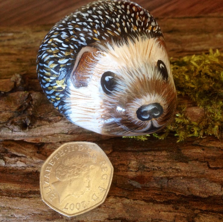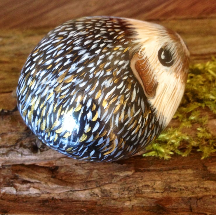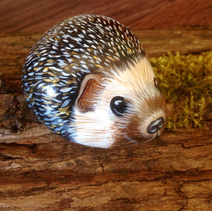 This little hedgehog has been hand painted onto a lovely shaped smooth stone. It has been glazed for a glossy protective finish.