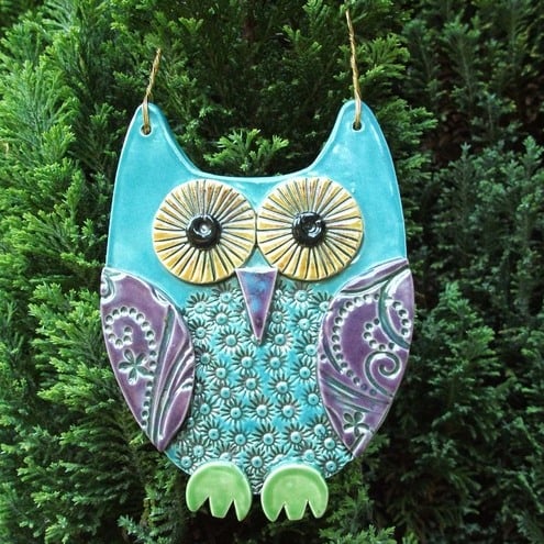 This cute ceramic owl is made from white earthenware clay with all the individual pieces hand cut and decorated.