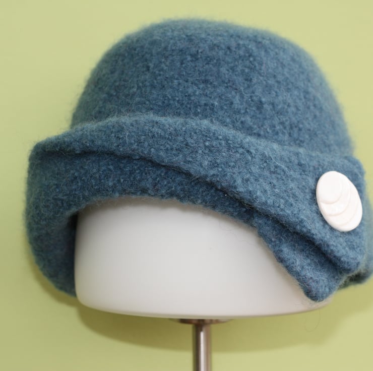 This stylish hat was inspired by the cloche, but has a folded brim.