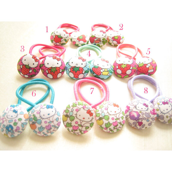 Liberty London collaborate with Hello Kitty to make this fabulous tana lawn fabric. Selected to use as cute as a fabric button bobbles/clips for hair.