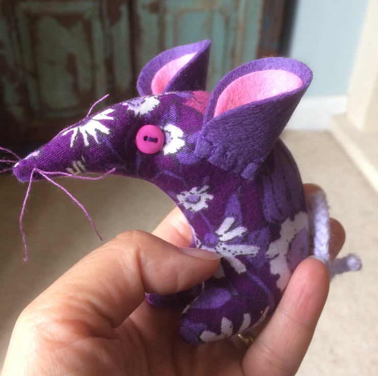 Retro 'tastic Mouse mouse has button eyes, felt ears and a plaited wool tail and cotton whiskers. He is approx 10cm tall from the tips of his toes to the top of his ears and approx 11cm from his nose to his bottom.