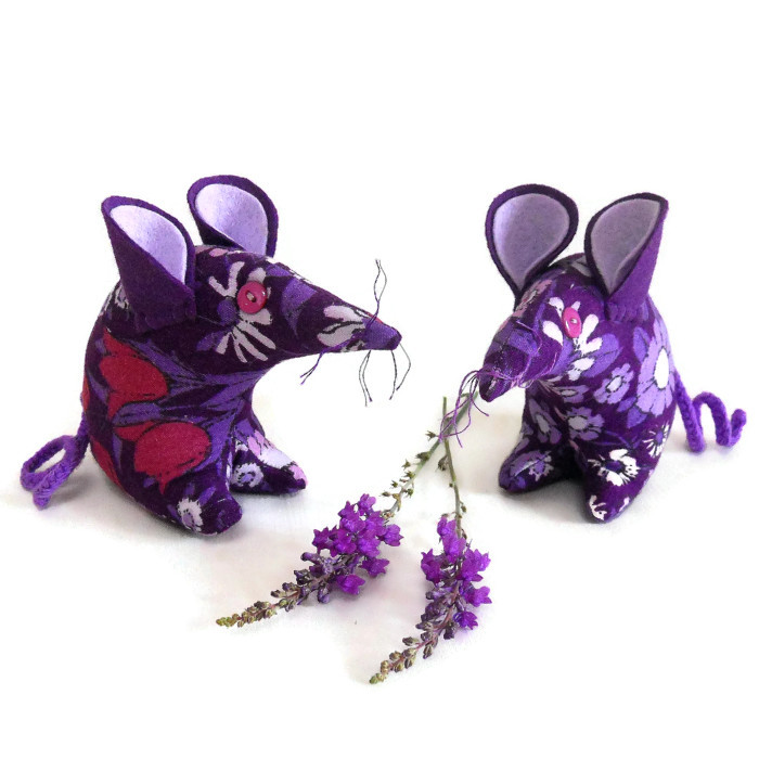 Mouse made 60s Purple Daisy Chain Vintage Fabric from WittyDawn.