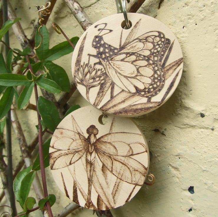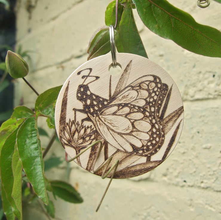 Pyrography is a method of decorating items using a heated tool. This listing is for a chunky wooden keyring decorated with a butterfly, it is made and ready to post. I can put a name and/or date etc. on the reverse. Please see the images for the many variations.