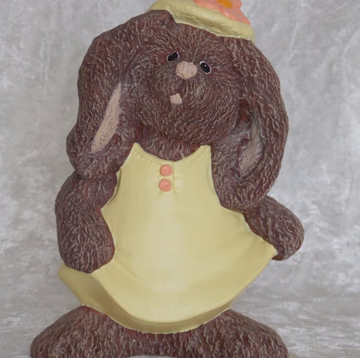 I have for sale a ceramic girl bunny rabbit ornament, which was hand painted by myself. She is a standing figurine, wearing a yellow and peach coloured Summer dress and hat. She would make a lovely addition to anyone's home, or perhaps given as a gift.