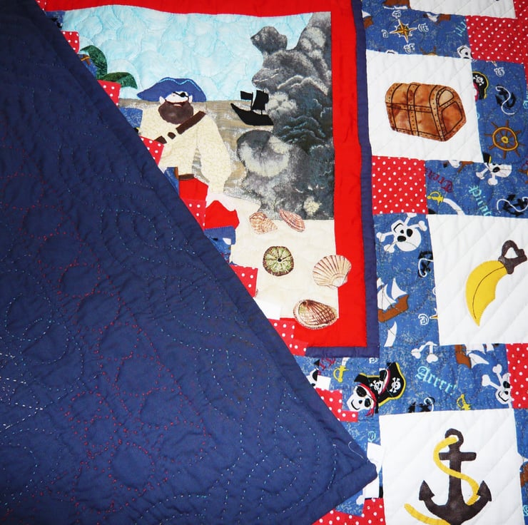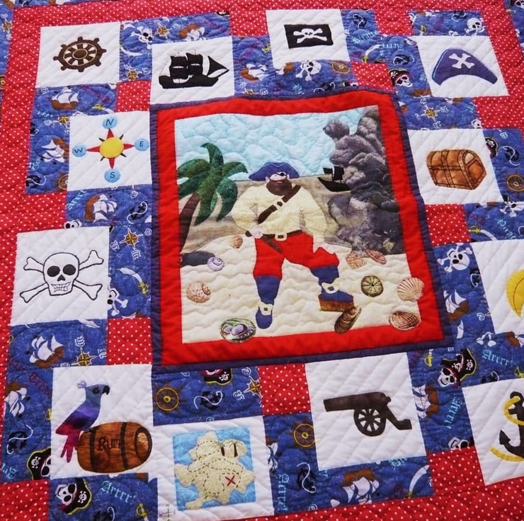 I had an idea of a pirate quilt, found a picture of a prate and it really evolved from there.