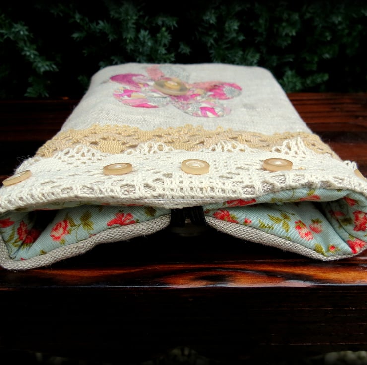 The back of this sleeve is the same linen as the front, and it is lined with a layer of cotton wadding and delicate floral cotton.