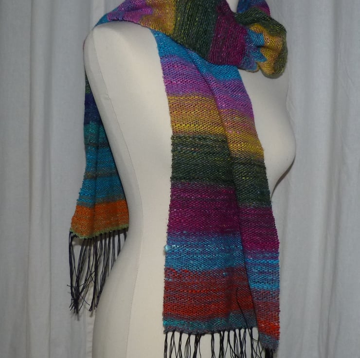 I love weaving on my rigid heddle loom and have been having a wonderful time creating this unique scarf. The colours in the Noro yarn create a bright and lovely scarf which makes a great addition to your wardrobe.