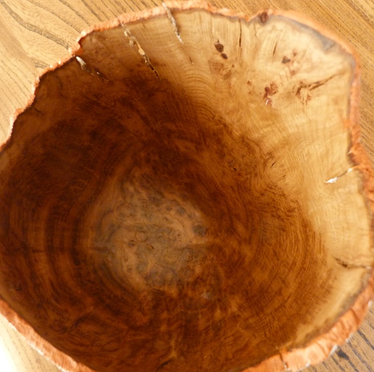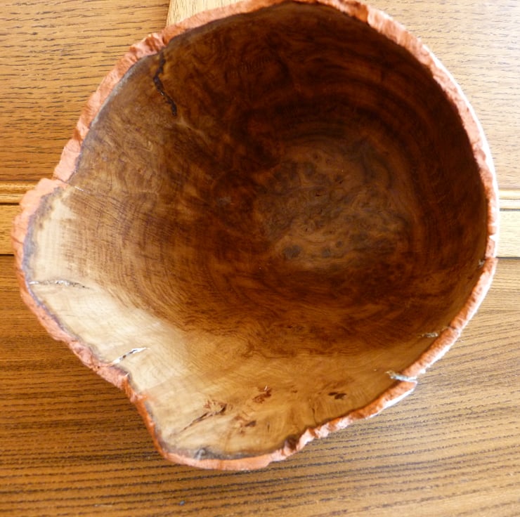 OAK BURR, DEEP BOWL, GREEN TURNED.