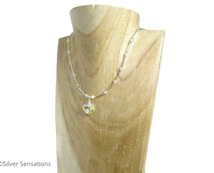 At the front of the necklace is a Swarovski Crazy 4 U heart shaped pendant which is 17mm x 12mm in size & hangs from a Sterling Silver fluted pendant bail.